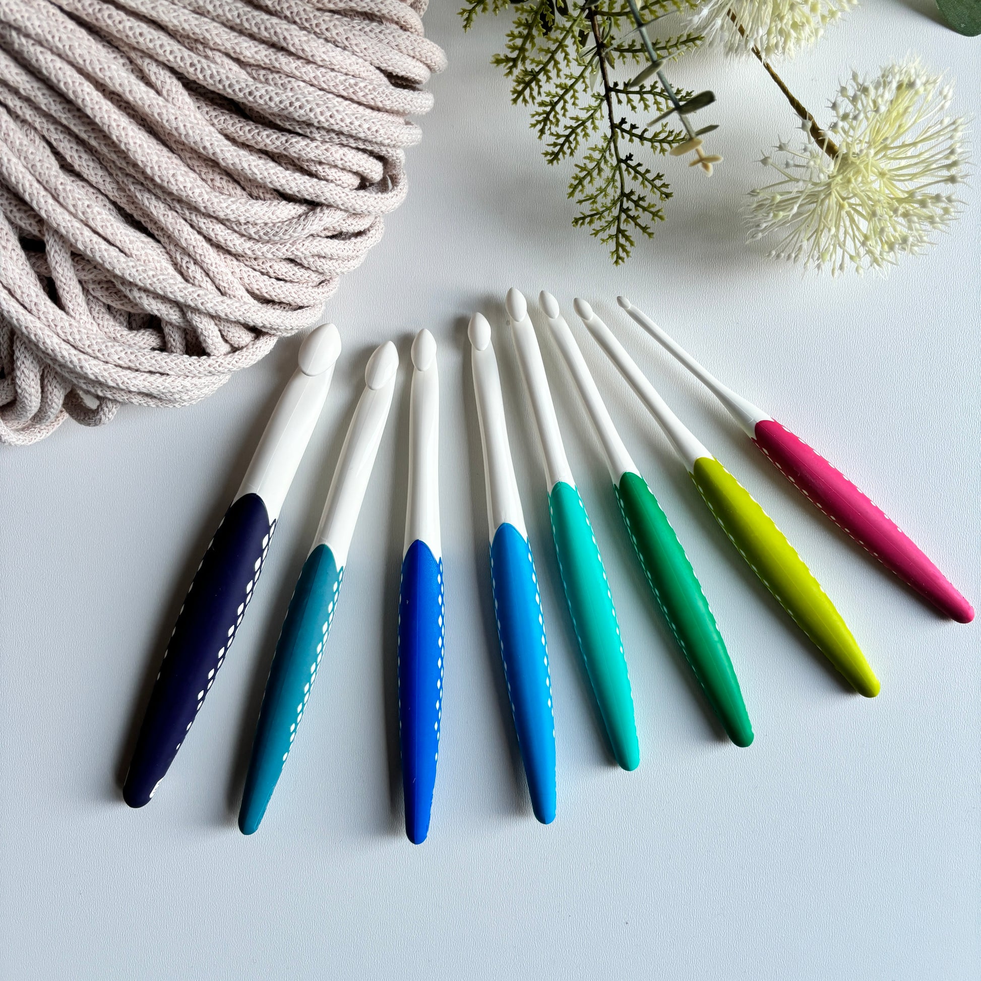 - Material: Die Häkelnadeln bestehen aus hochwertigem, bruchfestem Kunststoff. Sie sind latexfrei und eignen sich somit auch für Allergiker.