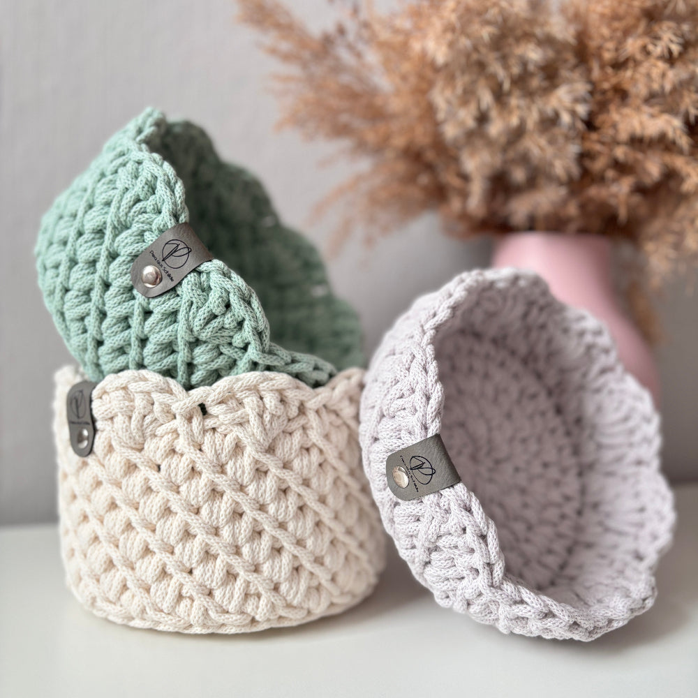 Jeder Korb wird auf Bestellung gehäkelt und ist ein echtes Unikat.